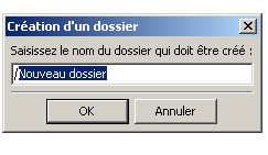 Choisissez dans ce menu l'option "Créer un dossier". La fenêtre suivante apparait alors :